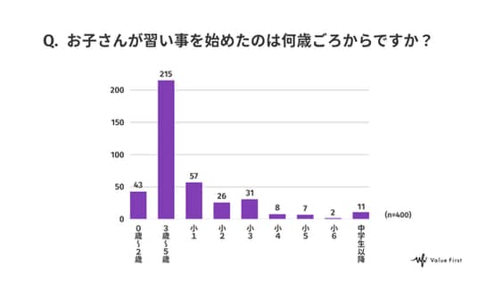 「お子さんが習い事を始めたのは何歳ごろからですか?」という質問に対し、回答者の5割以上が「3歳~5歳」と回答しました。