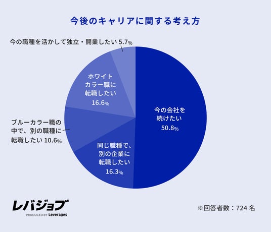 レバレジーズ株式会社が運営するエッセンシャルワーカー向けキャリア支援サービス「レバジョブ」(https://levjob.jp/)は、現在ブルーカラー職に従事している724名を対象に*1、キャリアに関する実態調査を実施しました。