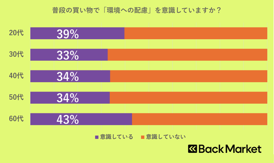 - 普段のショッピングで「環境への配慮」を意識する人は約37%、シニア層の方が環境意識が高い傾向に