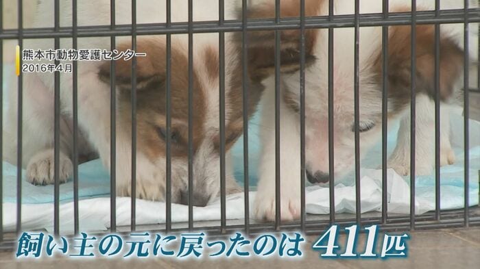 環境省によると、地震発生後、熊本県と熊本市が保護・収容したイヌやネコは合わせて2499匹。そのうち飼い主の元に戻れたのは、わずか411匹に留まった。