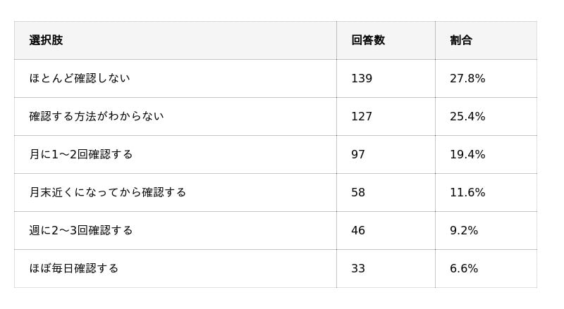 「ほとんど確認しない」(27.8%)と「確認方法がわからない」(25.4%)を合わせると半数超がデータ残量を把握できておらず、管理のハードルの高さが浮き彫りです。