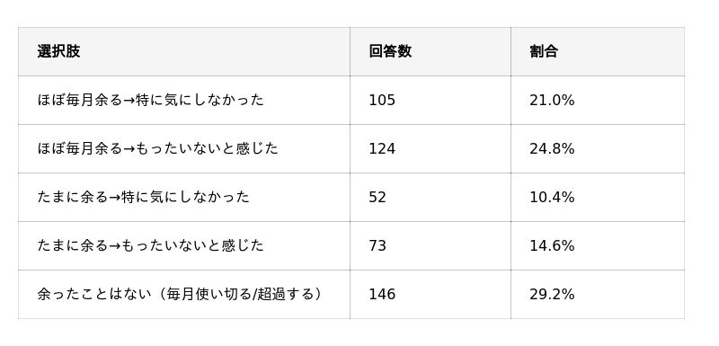 データ容量が余った経験を尋ねたところ、70.8%が「余った経験がある」と回答。そのうち「もったいない」と感じた人は39.4%に上り、データ有効活用へのニーズが裏付けられました。