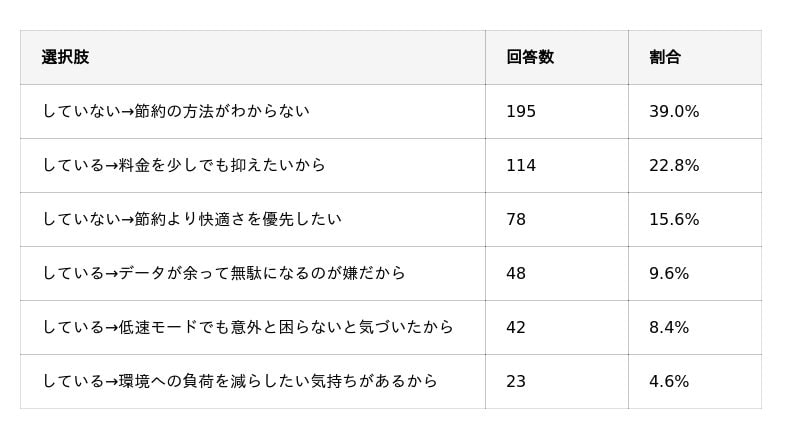 データ節約「方法がわからない」が39.0%で最多