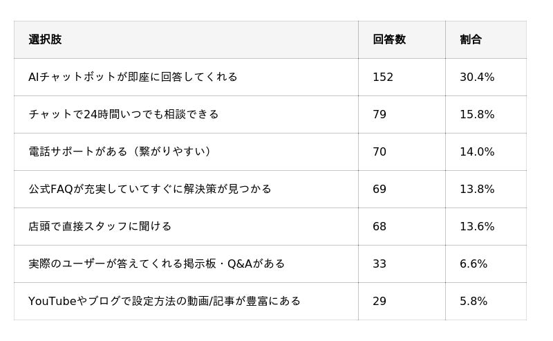 安心サポートは「AIチャットボット」が30.4%でトップ