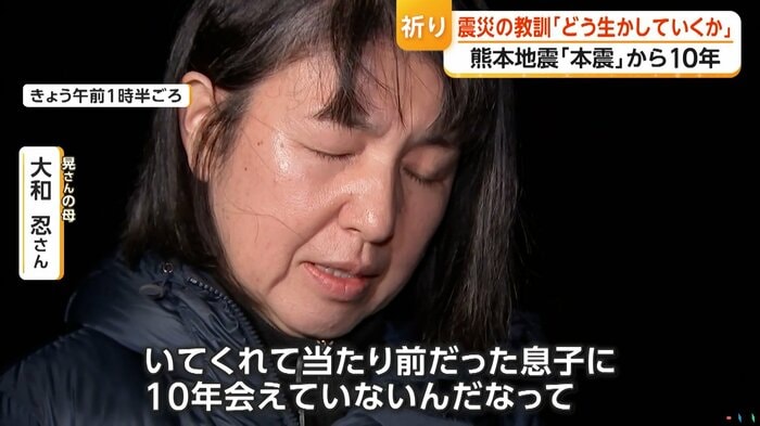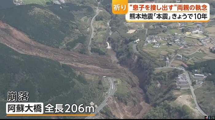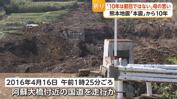 観測史上初めて、震度7を2度観測した熊本地震の本震から16日で10年が経った。復興が進む一方で、土砂崩れで22歳の息子を亡くした母親は今も悲しみの中にある。地震の教訓から生まれた新阿蘇大橋は2021年に開通した。