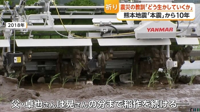 父・卓也さんは、晃さんがかつて、もみまきを手伝った苗から米を育て、息子の分まで田を耕し続けた。