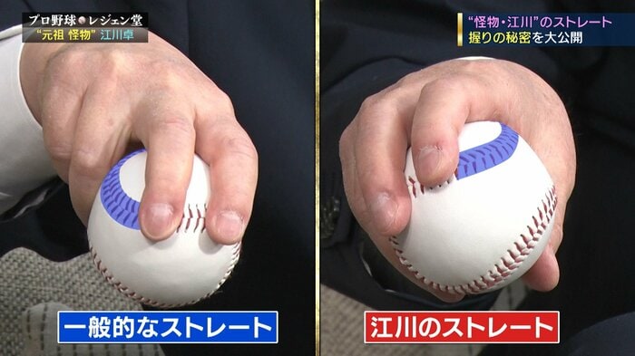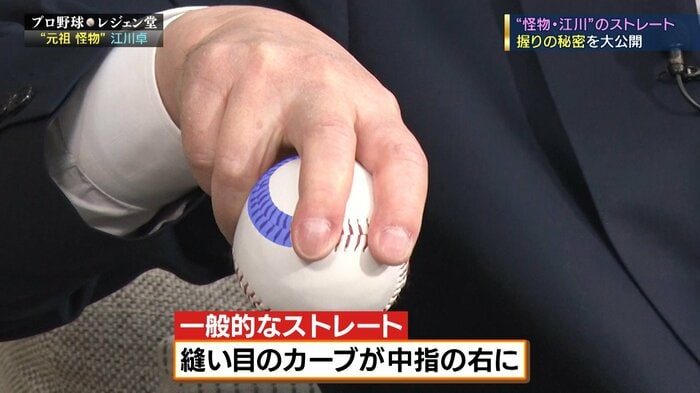握り方もこれは面白いんですけど、ピッチャーのストレートって、このカーブを右にこうこう握るんですよ、ストレートって。分かります?