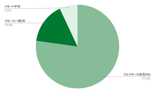SOKUDANに掲載されているFlutter案件は、フルリモートが77.2%と約8割を占め、一部リモート可を含めると93%がリモート対応可能です。