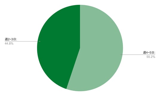 SOKUDANに掲載されているFlutter案件は、週4~5日が55.2%と過半数を占める一方、週2~3日も44.8%とほぼ同水準です。週1日の案件はありませんが、稼働日数の選択肢は比較的広い職種です。