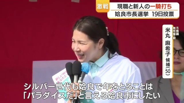 対する米丸麻希子氏は、元県議として地域の声を聞き続けてきた経験を武器に、初めての市長選に挑む。2024年の県知事選にも出馬した米丸氏の出陣式には幅広い年齢層の支持者が集まり、熱気に包まれた。