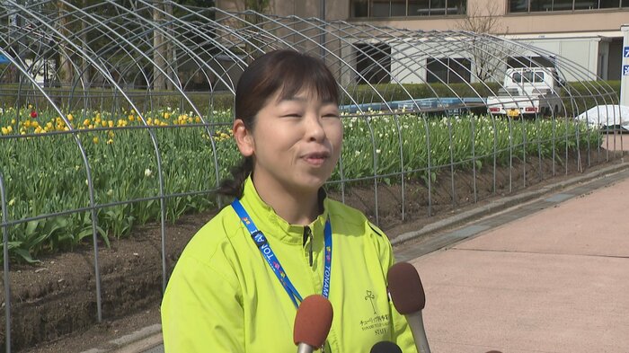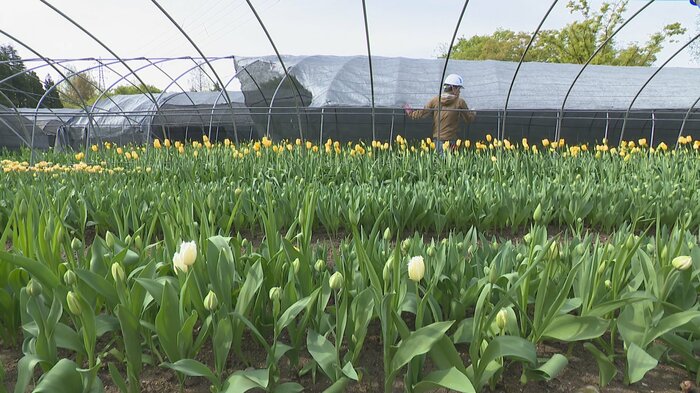 「遮光ネットが外され、チューリップは久しぶりに太陽を浴びました。チューリップフェアに向けて準備万端です」