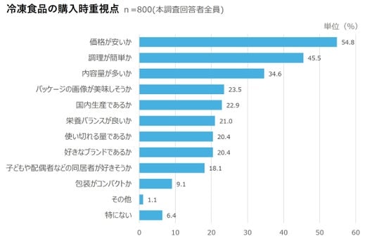 - 冷凍食品を購入する際に重視するポイント、「価格が安いか」が半数越えで最多