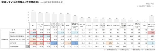 常備している冷凍食品<世帯構成別>(n=800)