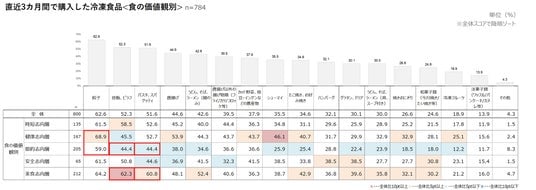 直近3カ月で購入した冷凍食品<食の価値観別>(n=800)