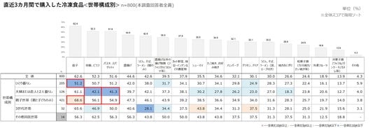 直近3カ月で購入した冷凍食品<世帯構成別>(n=800)