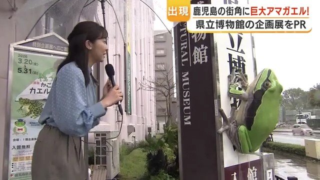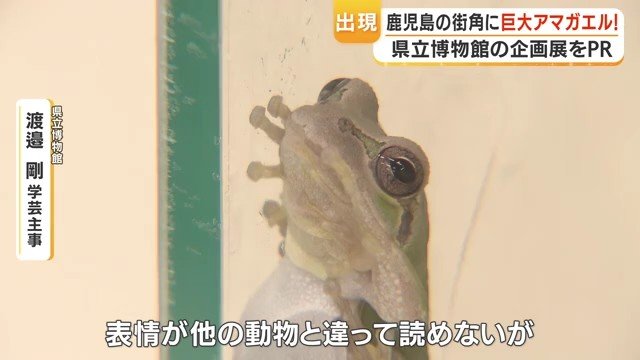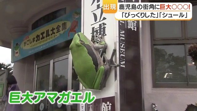 鹿児島市の街角に、体長1メートルの巨大なアマガエルが現れた。「すごいびっくりしましたし、ちょっとかわいい」「シュールですね」——通行人がそう声をあげるほどのインパクトを放つこのオブジェ、実は県立博物館の職員が約3カ月かけて手作りした力作だ。