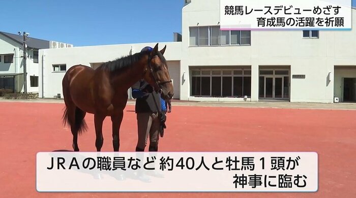 神事にはJRA職員など約40人と牡馬1頭が臨み、関係者が玉串を捧げた。