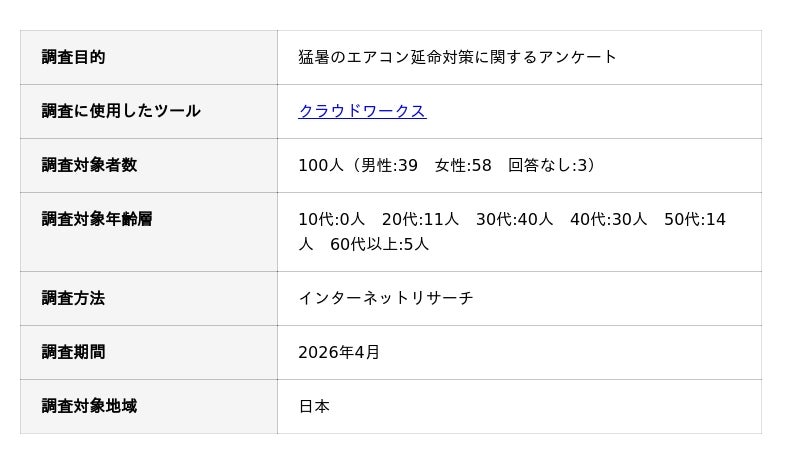 猛暑のエアコン延命対策に関するアンケート調査の概要