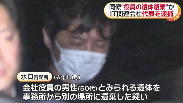 港区赤坂にあるIT関連会社の代表・水口克也容疑者(49)は2025年10月、会社で役員を務める50代の男性とみられる遺体を会社の事務所から別の場所に遺棄した疑いが持たれている。
