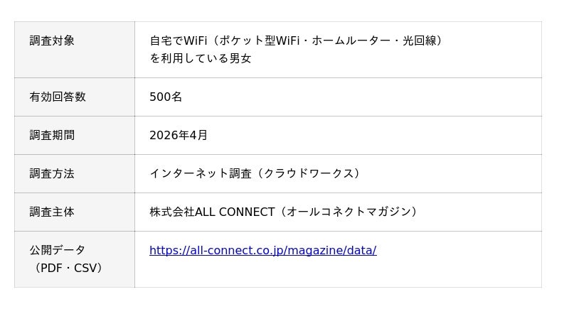 通信インフラ事業と地域振興事業を手掛ける株式会社ALL CONNECT(代表取締役社長:岩井宏太・本社:福井県福井市)が運営する通信メディア「オールコネクトマガジン(https://all-connect.co.jp/magazine/)」は、WiFi利用者500人を対象に、WiFi料金の実態と安さ重視で選んだ際の満足度・後悔に関する調査を行いました。