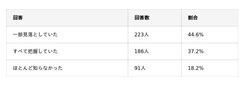 WiFi契約時に「初期費用・端末代・解約違約金」など月額以外のコストを把握していたかを聞いたところ、「一部見落としていた」44.6%と「ほとんど知らなかった」18.2%で、合計62.8%が隠れコストを見落としていたことがわかりました。