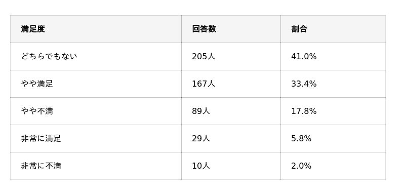 ・「どちらでもない」が最多で、積極的な満足には至っていない人が多い