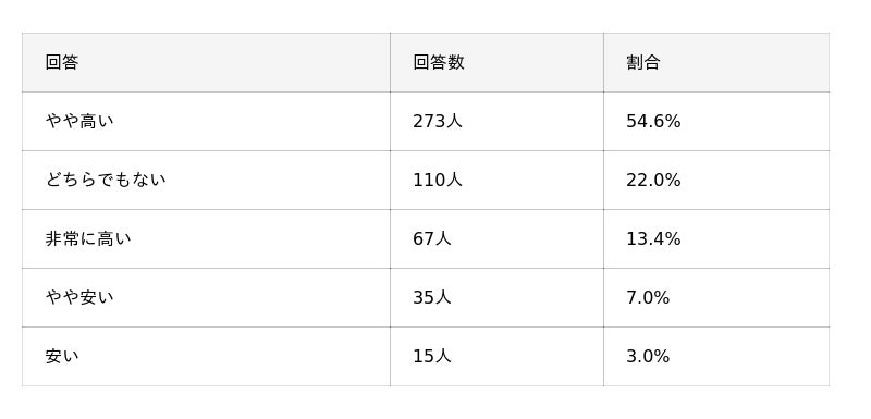 ・68.0%が料金を「高い」と感じている(「やや高い」54.6%+「非常に高い」 13.4%)