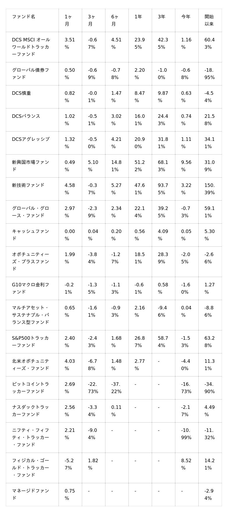上記のファンドごとの運用実績は一部抜粋しているため、以下の『海外積立の比較研究』の記事で完全版をご覧ください。