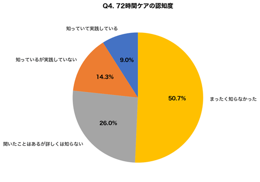 設問:日焼け後72時間以内のケアがシミ予防に重要であることを知っていましたか?