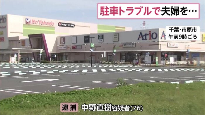 中野直樹容疑者は19日、市原市の商業施設の駐車場で駐車の仕方で夫婦と口論になった際、夫を車ではねて殺害しようとした疑い。