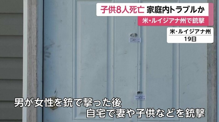 南部ルイジアナ州シュリーブポートの住宅で、19日早朝、男が女性を銃で撃った後、自宅で妻や子供などを銃撃しました。この銃撃で、1歳から12歳の子供8人が死亡し、うち7人は自身の子供でした。また、最初に撃たれた女性は重体、自宅にいた妻と、屋根から飛び降りた子供が重傷です。