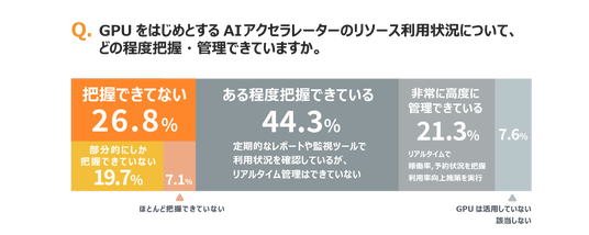 - 2割以上がGPUをはじめとするAIアクセラレーターのリソース状況を把握・管理できていないと回答。