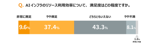 - 運用面では半数以上がAIインフラのリソース効率に満足していないと回答。
