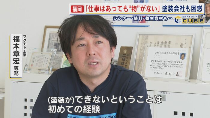 「最初はシンナーだけだったんですが、いまでは塗装する用具にも派生しています。人がいて仕事があってもものがないので、塗装ができないということは初めての経験」と話すのは、フクモト工業専務の福本章宏さん。