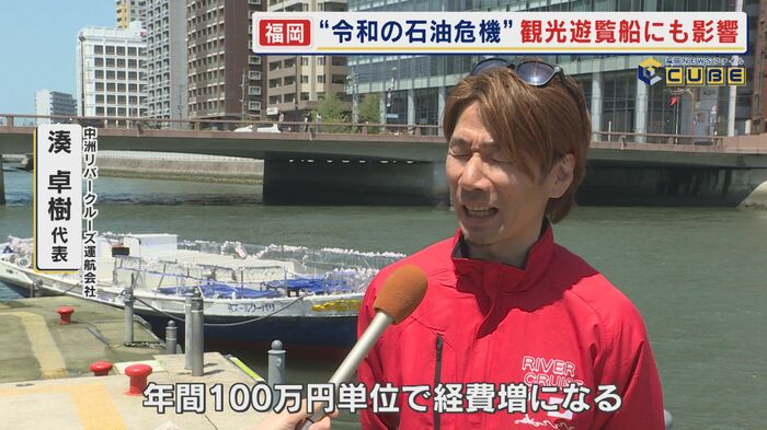 『中洲リバークルーズ運航会社』代表の湊卓樹さんは「繁忙期は便数も増えるし、1日の使用量が100リットルを超えるときもある。年間100万円単位で経費増になる」と表情も浮かない。