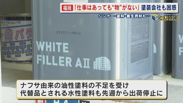 ナフサ由来のシンナーや塗料をはじめ、塗装工事に使う多くの資材が出荷停止や大幅値上げになっているという。