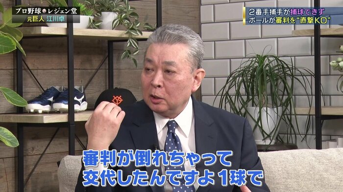 そしたらボールが上行って、自分の頭を通り越して、審判のマスクに当たったんですよ。