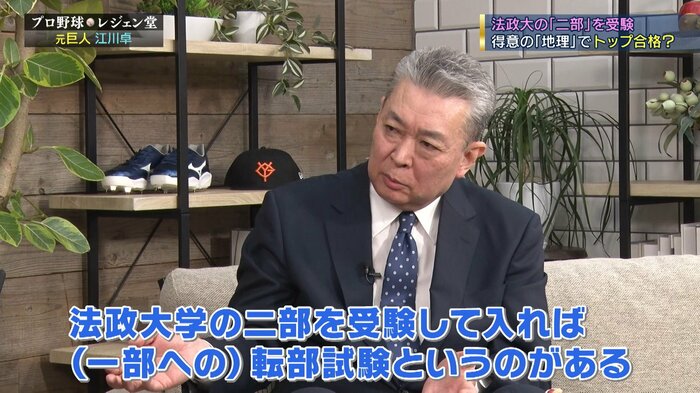 じゃあ早慶戦でできなくても六大学ではやりたいと思って、法政の二部っていうのを受験して、この二部で入れば、(一部への)転部試験っていうのが、難しいのがある。
