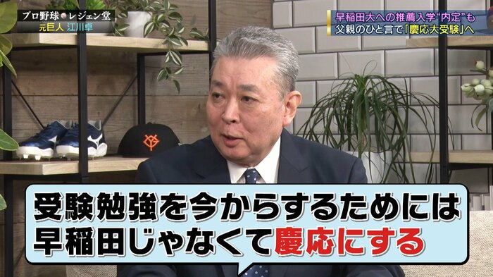 早稲田に入ったじゃないですか。ですから江川さんは「実力でやっぱり慶応行きたい」っていう、そういう気持ちが強かったのかなっていうふうに思ったんです。