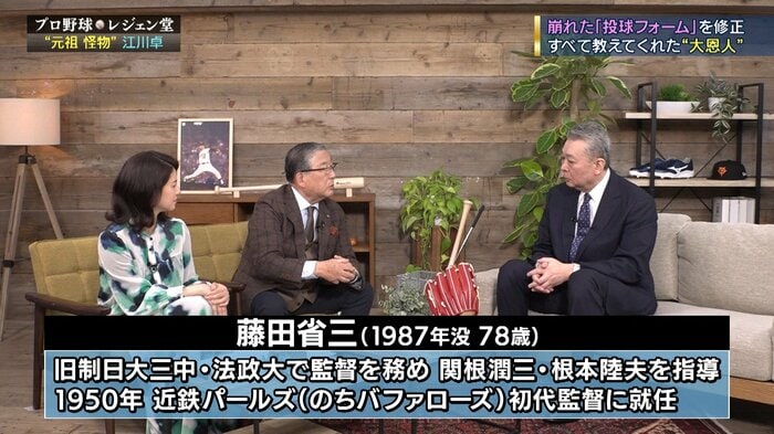 法政のOBで、後に「近鉄パールス」っていう球団のその初代監督の藤田省三さんという方が、江川さんにとっては、非常にやっぱり出発点になるような方だったと。