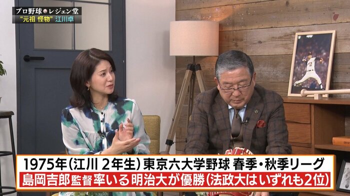 (島岡吉郎監督は)僕が3年生まで法政に負けると怒っていました。法政に負けると。江川さんがいたので勝てなかったんです。今までずっと「打倒早稲田」とかって書いてたんですけど、「打倒江川」に変わるんです。