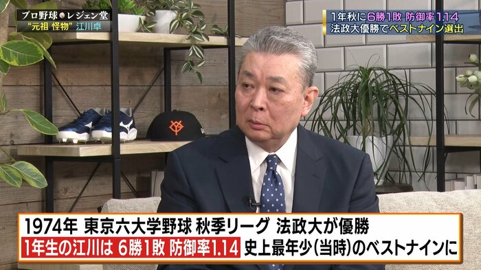 1年生の江川は6勝1敗、防御率1.14 史上最年少(当時)のベストナインに ]