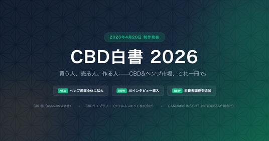 CBD部(Asabis株式会社)、CBDライブラリー(ウェルネスキット株式会社)、CANNABIS INSIGHT(SETODEZA合同会社)の3社による製作委員会は、日本のCBD・ヘンプ市場の実態を多角的に分析する年次業界レポート「CBD白書 2026」の制作を決定し、本日4月20日より調査協力者およびパートナー企業の募集を開始いたします。白書は2026年8月の公開を予定しています。