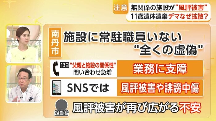京都府南丹市で起きた男児遺体遺棄事件では、SNS上に容疑者の父親の国籍や勤務先などをめぐる誤った情報がSNSで拡散された。さらに、海外メディアがデマ情報を引用して誤報し謝罪、無関係な施設への風評被害も発生した。専門家は、不安や怒りから憶測に飛びつきやすい心理が背景にあり、複数の情報源を確認する重要性を指摘する。