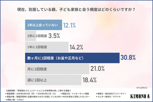 離れた家族に会う頻度は「数ヶ月に1回」が最多、2年以上会っていない層も