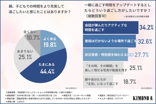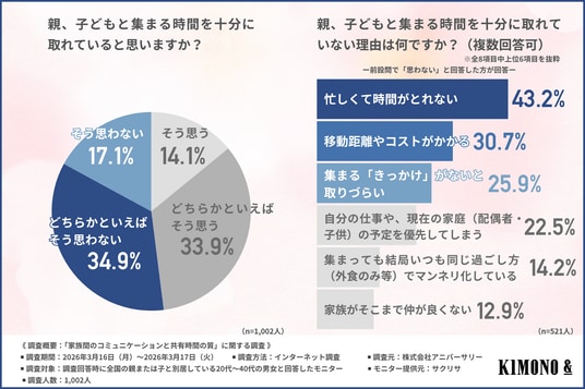 そこで今回、株式会社アニバーサリー(振袖・袴レンタル・フォトスタジオ「KIMONO&(キモノアンド)」を運営 https://kimonoand.kimono-yamato.co.jp/)は、全国の親または子と別居している20代~40代の男女を対象に、「家族間のコミュニケーションと共有時間の質」に関する調査を実施しました。