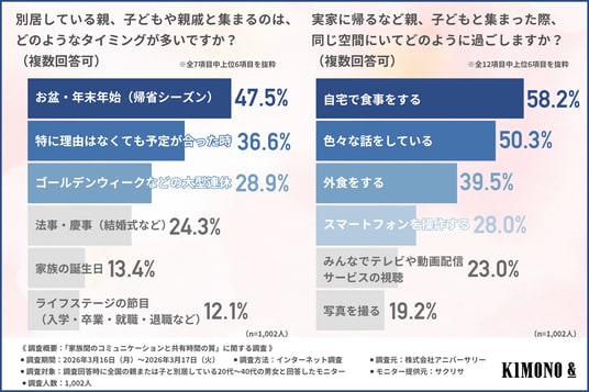また、集まるきっかけが個人の節目よりもカレンダー上の休暇に依存しているため、同じ空間にいてもスマートフォンを操作するなど、時間の「質」における課題も浮き彫りになりました。