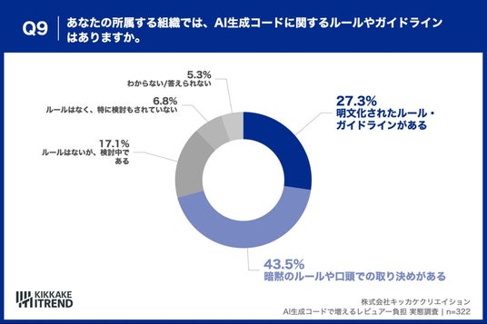 ■AI生成コードに関する「明文化ルール」は27.3%にとどまり、「暗黙のルール」が43.5%という結果に