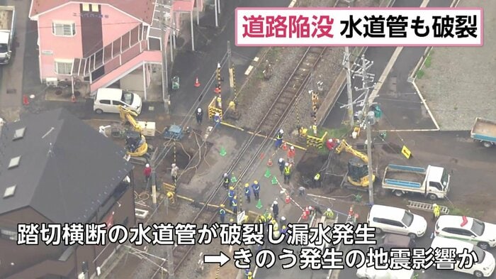 石巻地方広域水道企業団によりますと、踏切を横断している水道管が破裂し漏水が発生したということで、20日に発生した地震の影響とみられています。