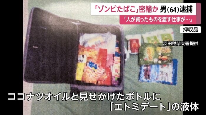 「ゾンビたばこ」と呼ばれる指定薬物エトミデートを密輸した疑いで、台湾に住む男が逮捕された。羽田空港での検査で、スーツケース内から薬物を含む液体が見つかった。容疑者は一部否認しており、警視庁は国際的な密輸組織の関与も視野に捜査を進めている。